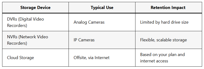 How much storage you have directly limits how long you can retain recordings. Here’s a basic breakdown: