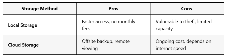 Choosing between cloud storage and local devices like DVRs or NVRs is an important decision in your security system setup.