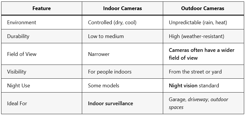 What Are the Key Differences Between Indoor and Outdoor Security Cameras?